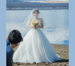 今回の新郎様、新婦様は思い出の場所である富士山とレストランウエディングというシュチュエーションに合うお衣装をというご要望でございました。