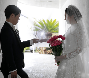 本日ご覧いただきますのは、フレンチレストラン AUBERGE de OOISHIでの結婚式を挙げられましたお二人でございます。