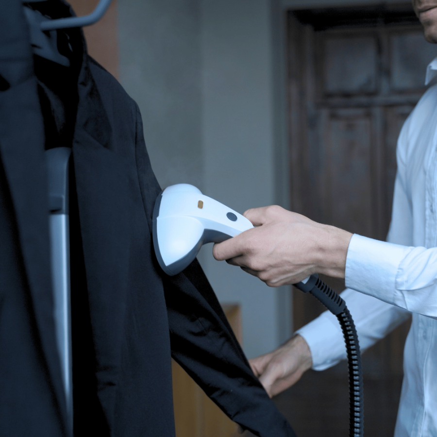 もちろん アイロンでもいいのですが、ハンガーにかけたままで不要なシワだけでなくアイロンでは整えるのが難しい箇所や汗やたばこなどの不快な臭いも除去してくれます。